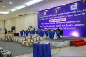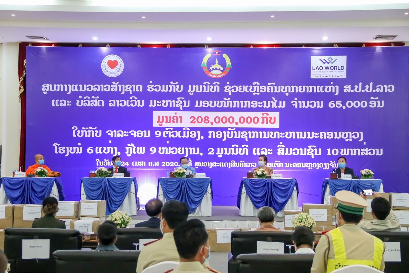 Lao World Public Company supported 68,000 pieces of facemask worth 208,000,000 Kip to traffic police of 9 cities in Vientiane Capital, police headquarters of Vientiane Capital, 6 hospitals, 9 rescue teams, 2 foundations, and 10 media organizations. The ceremony of facemask support was held on 24 April 2020 at LAO-ITECC exhibition center.