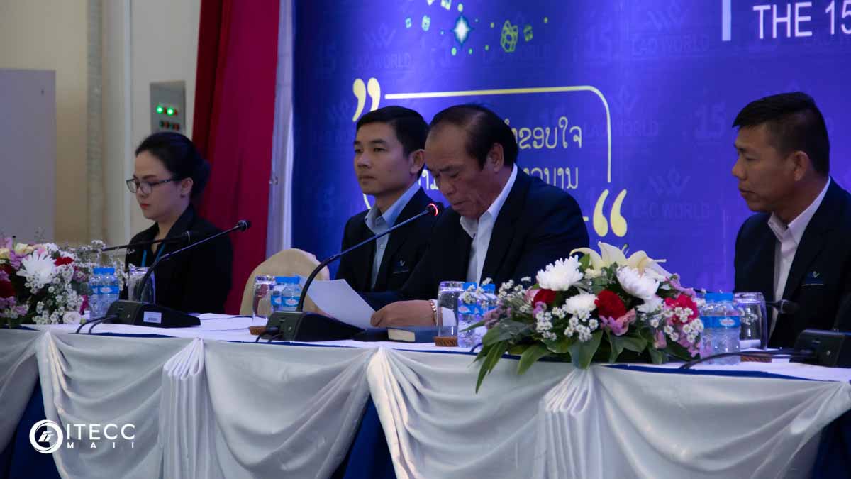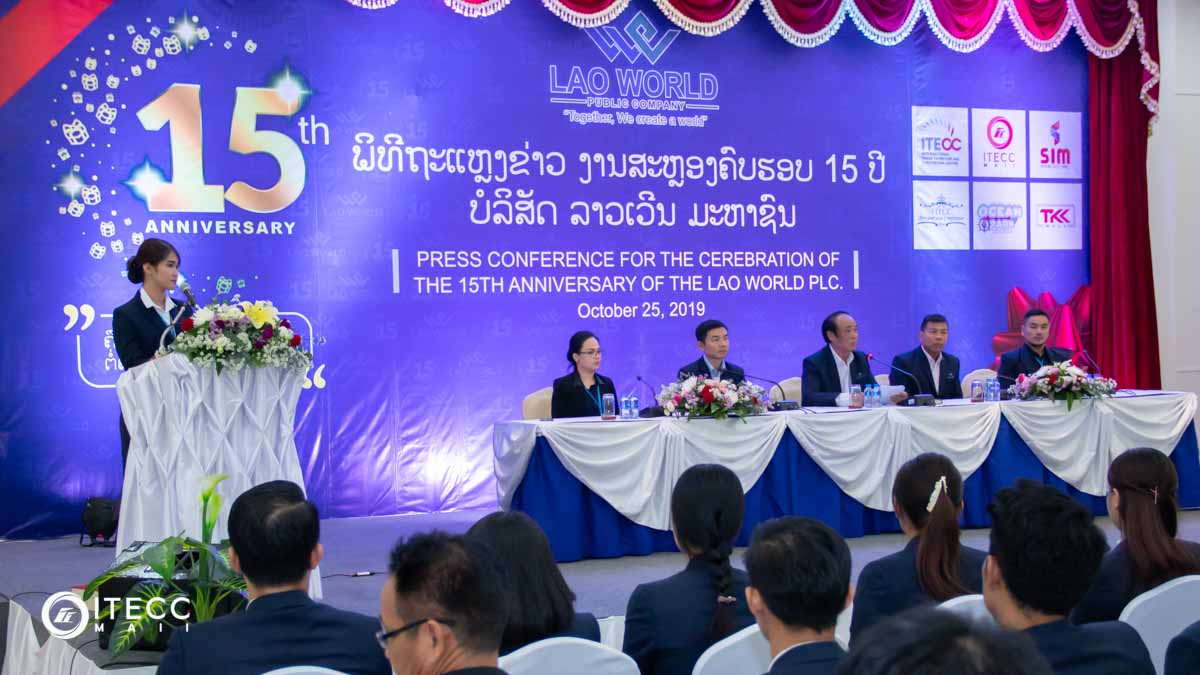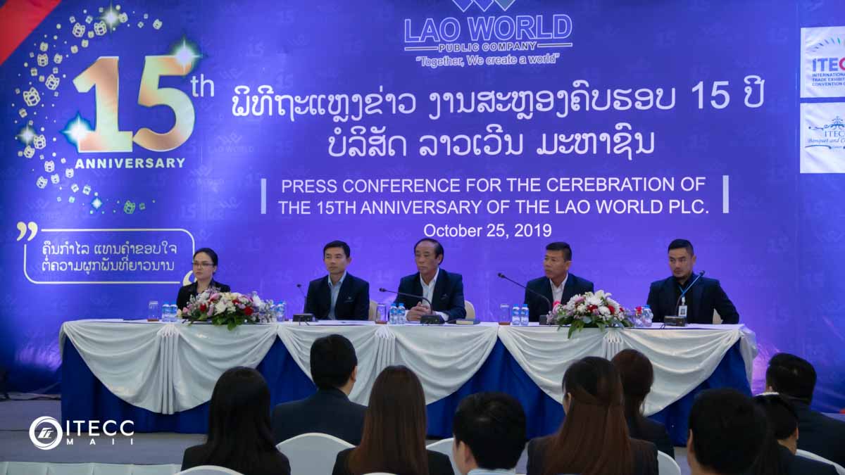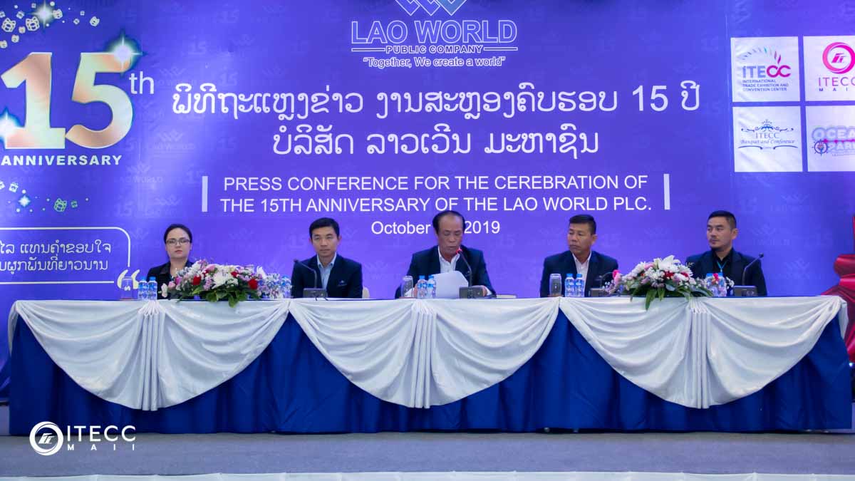 The Press Conference for the Celebration of the 15th Anniversary of Lao World Public Company was hold on October 25, 2019 at the Lao International Trade Exhibition and Convention Center (Lao ITECC). The celebration of 15th Anniversary will start from 1st November 2019 to 29th December 2019 in which there will be various activities held at Lao ITECC, ITECC Shopping Mall, Ocean Park, Thongkhankham Shopping Mall and ITECC Savanakhet. One of the important activities is to return a profit back to customers by giving chances to win lucky draw prizes such as car, motorbike, gold, TV and other prizes.