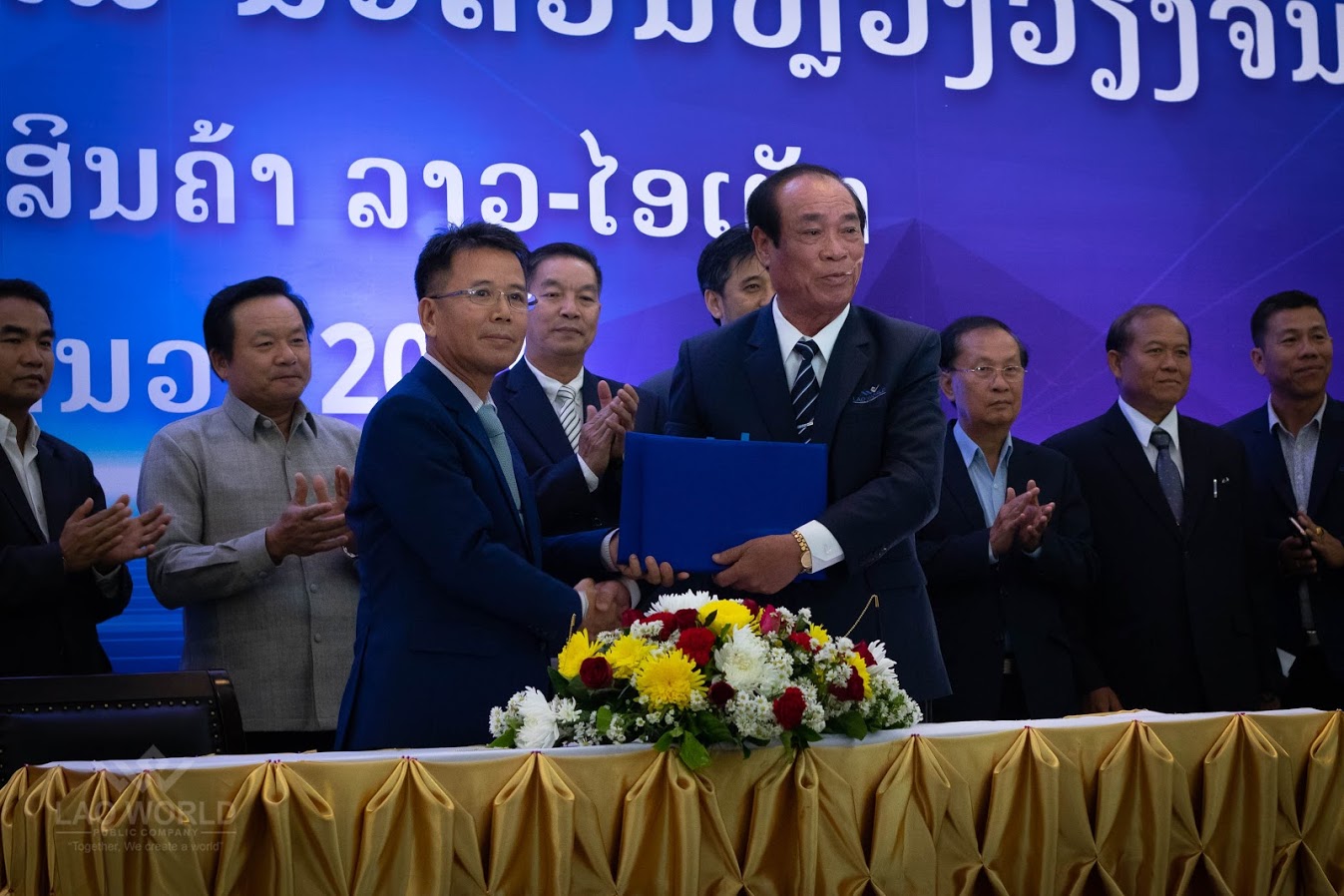 Mr. Keovanphone Vonethivongsy, Chief Executive Officer of Vientiane Capital State Bus Enterprise, and Mr. Sibountham Sibounmy, Chief Executive Officer of Lao World Public Company have signed the contract, attended by Mr. Phoukhong Bannavong, Vice Mayor of Vientiane Capital and distinguished guests for witness.